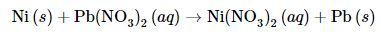 Below is a reaction between nickel metal and aqueous lead nitrate solution.