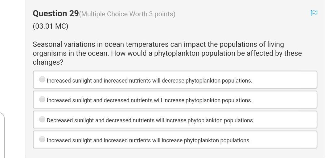 Increased sunlight and increased nutrients will increase phytoplankton populations