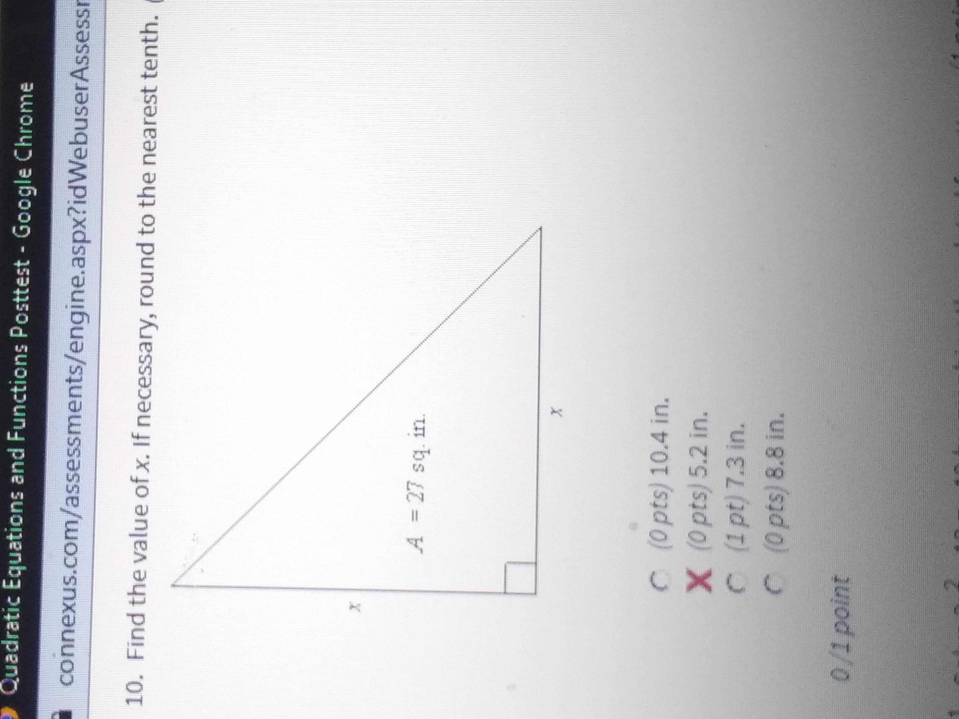 Undo the square on the x by taking the square root of both sides. Rounding to the neareast tenth gives you that x = 7.3