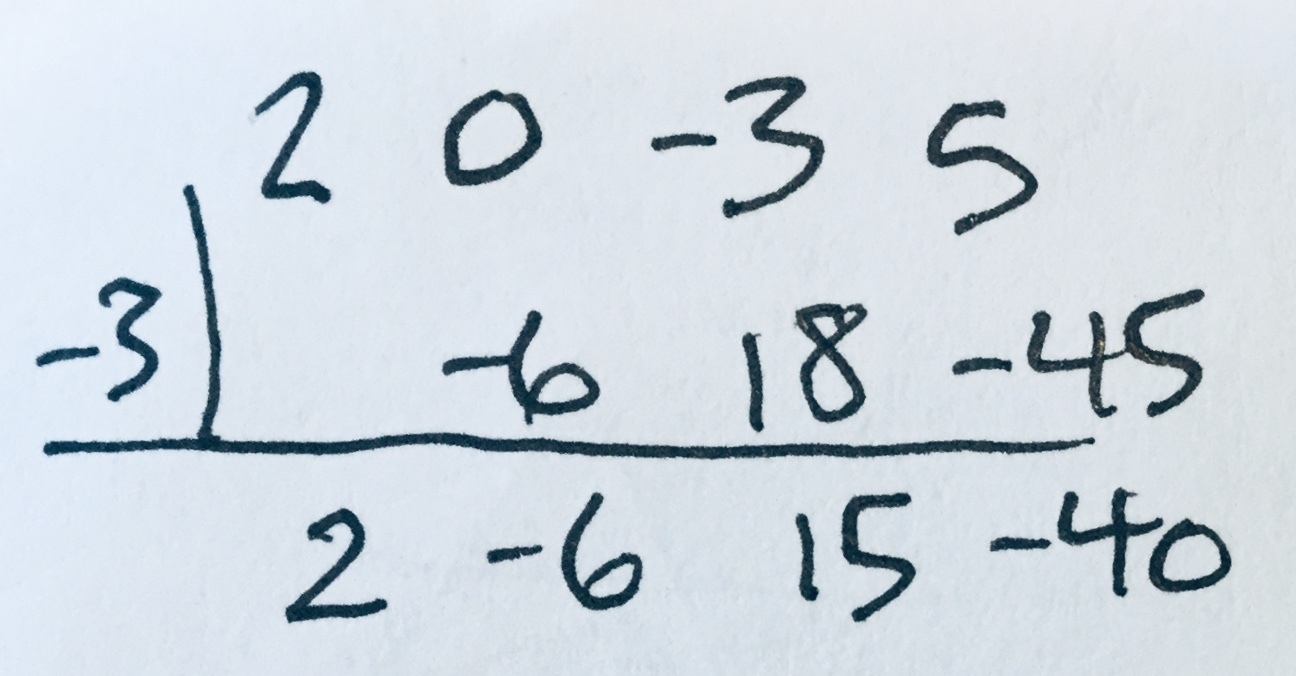 Either to the left or sligthly below those coefficients (and above a horizontal line), the root of the binomial divisor is shown. Here, your divisor is (x+3), so its root is x=-3. In the situation where the divisor is (ax+b), the root you will use is -b/a.