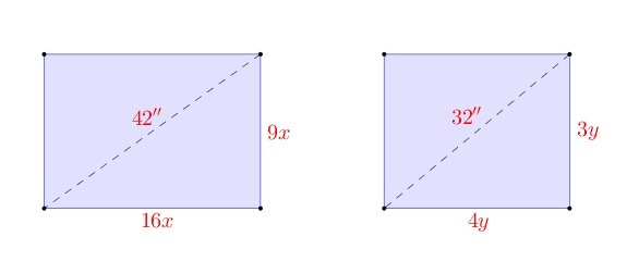 Thus 42 inches 16:9 television has 262.44 square inches more screen area.