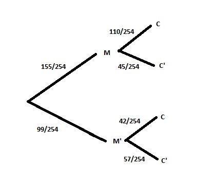 P(C'|M) = (45/254)/(155/254)