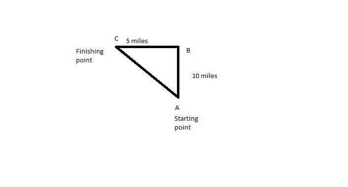 Jalen jogged 10 miles due north, then turned due west and jogged 5 more miles.