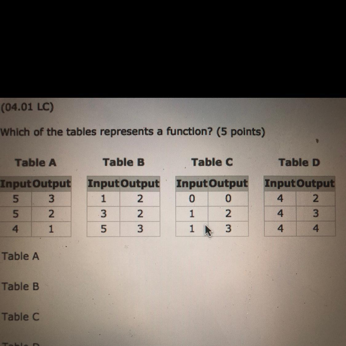 Why table 4 is not a function: