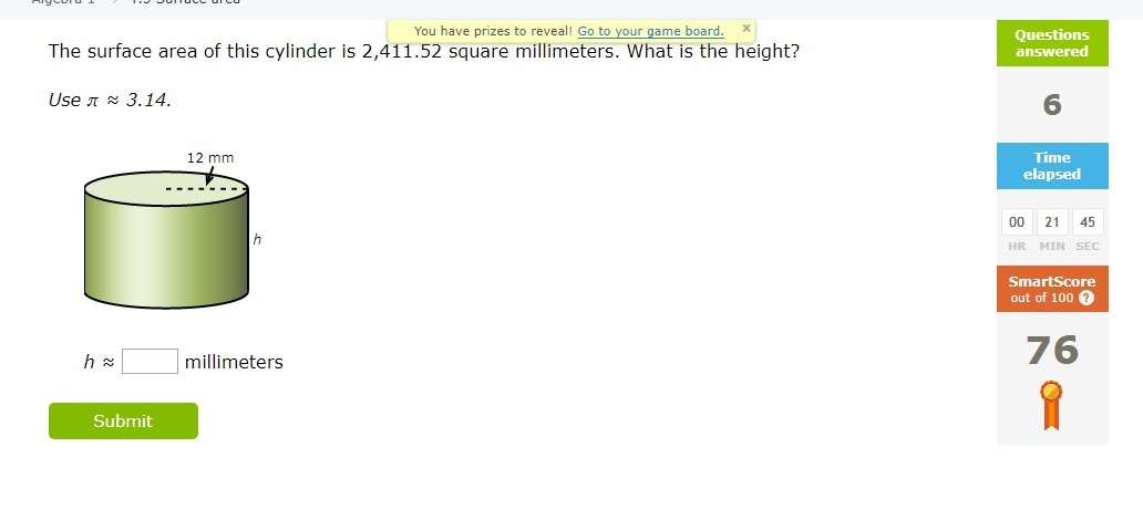 We found L = 1507.2 and we know that r = 12, so let's use this to find h