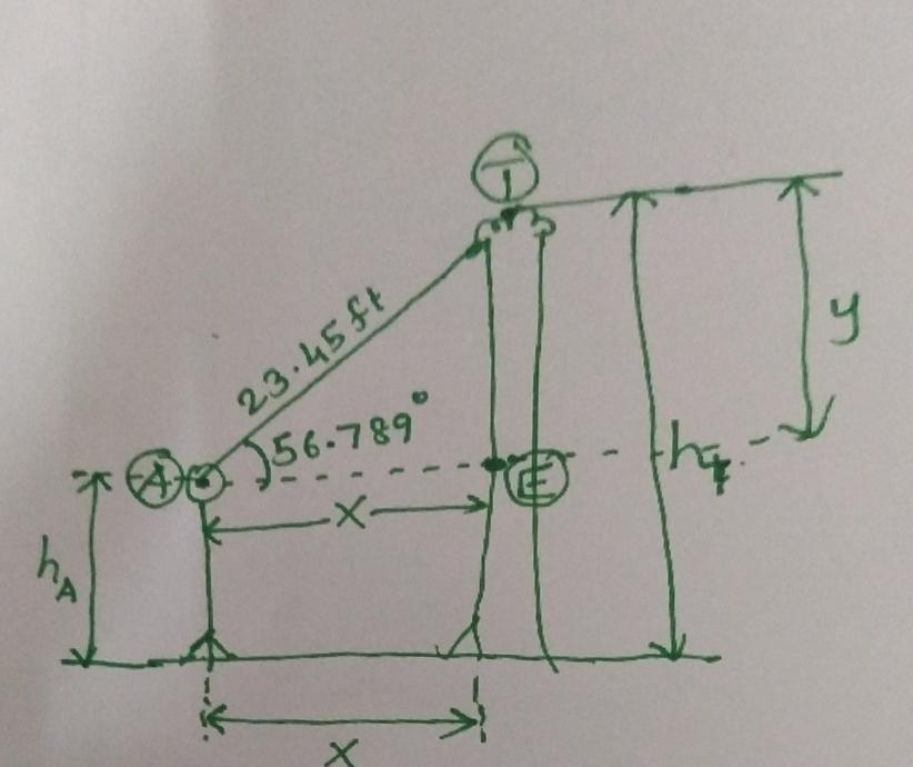 , distance of tree from Alexa as X and vertical distance between eye line and top of tree is y.