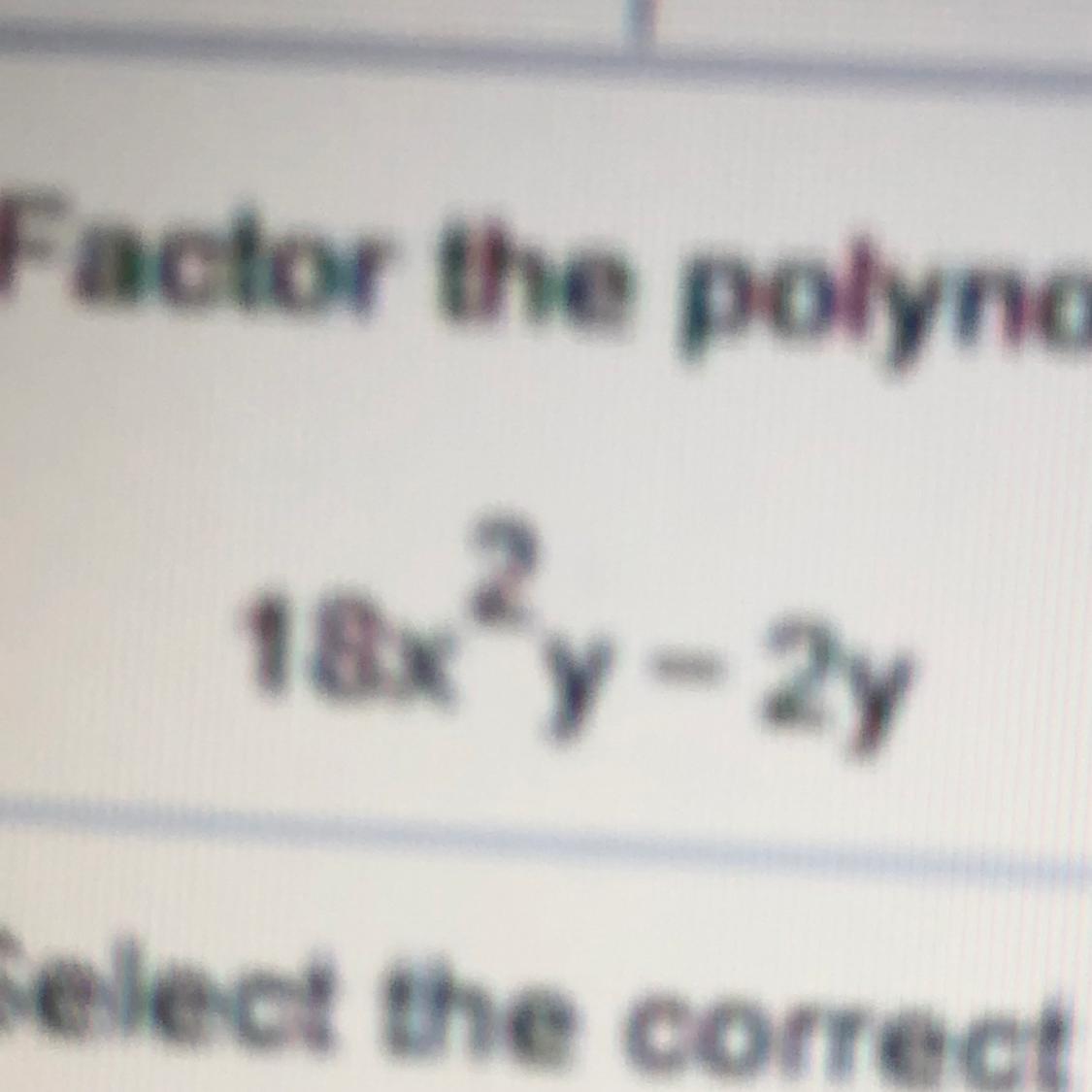 HELP PLEASE ! Factor the polynomial completely. 18x^2y-2y