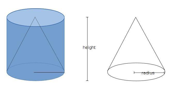 so... a cylinder that has the same "h" and "r" as a cone, will have a volume of
