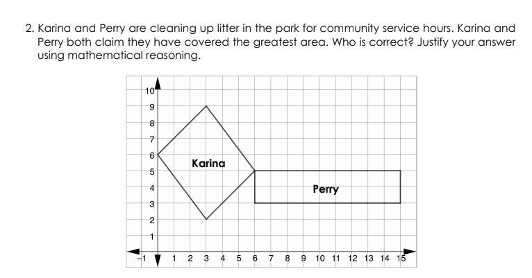 So since the rectangle has the bigger area, then Perry has covered a larger area during her community service