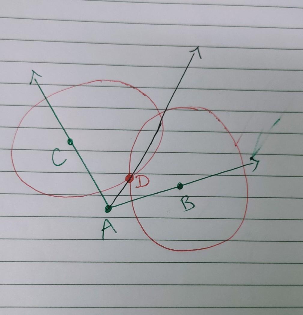 3. Both circles intersect each other at a point D