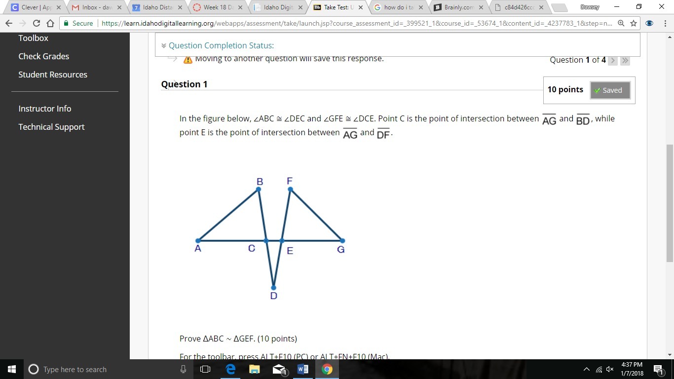 I need help ASAP!!!!!I need to prove that Triangle ABC is similar to GFE.
