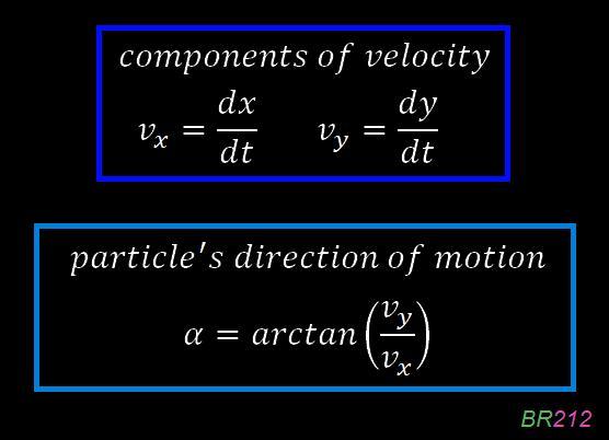 The direction of motion of a particle is given by an α angle which can be calculated by the trigonometric formula.