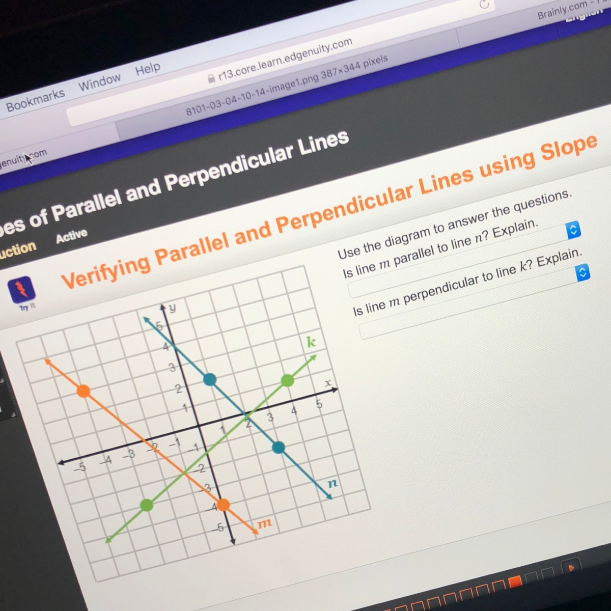 Answer: The slope of K is the negative reciprocal of M, therefore they are