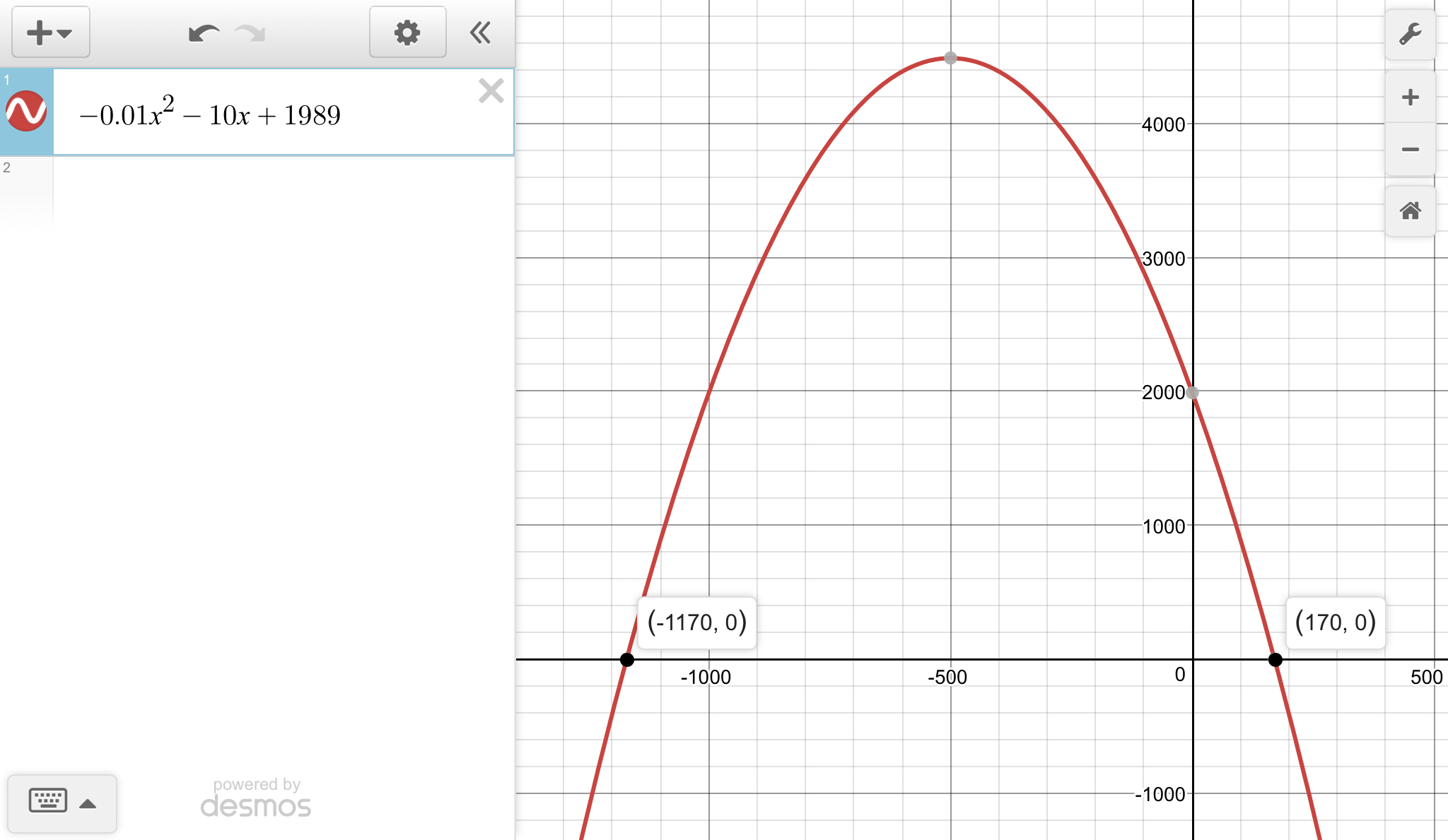 0 = -0.01x2-10x+1,989 from the system.