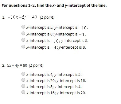 We can conclude that our x-intercept is 16; thus the correct answer in your list is, once again, the fourth one: