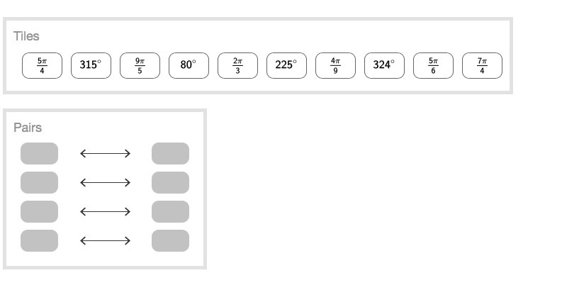 Match each angle measure in degrees with its equivalent measure in radians