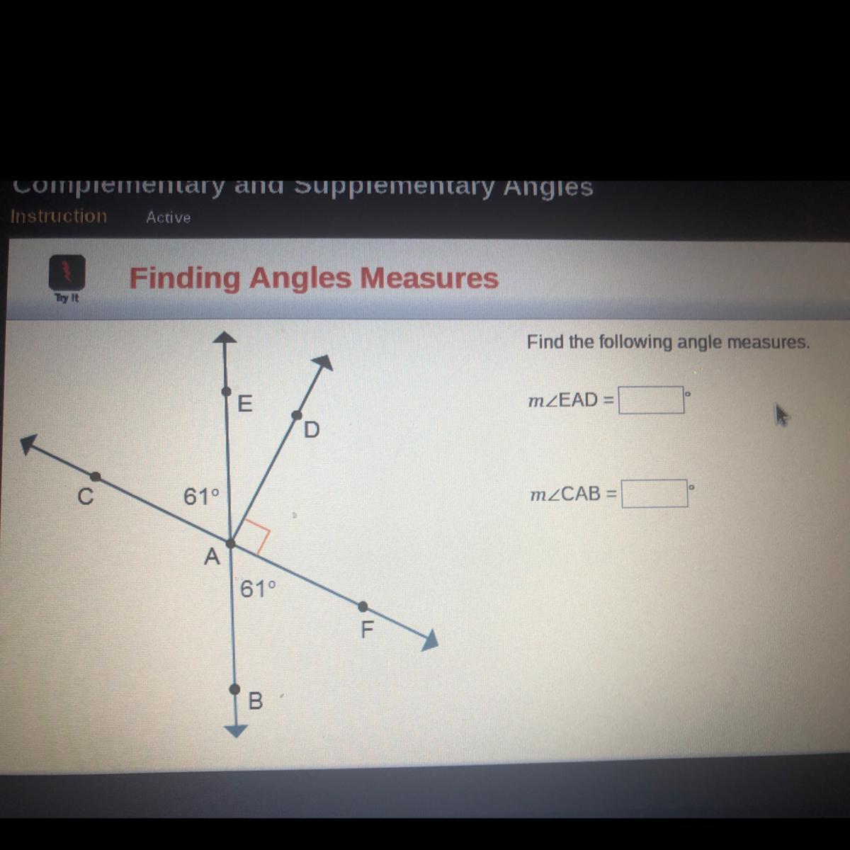 <em><</em><em>CAB</em><em>=</em><em>1</em><em>8</em><em>0</em><em>°</em><em>-</em><em>6</em><em>1</em><em>°</em>