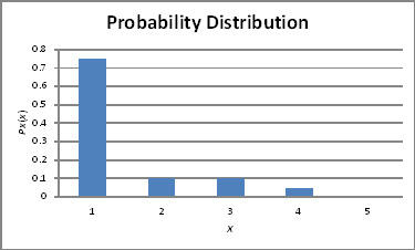 It is clear that most of the data (around 75%) is consist of value 1, which is the leftmost part of the data. Since it was more than 50% of the data, the median should be 1.