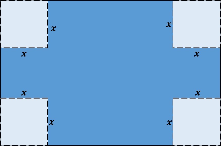 Label the shorter side as 8 - (x + x) = 8 - 2x That should be the length between the 2 xs.  That line is the width
