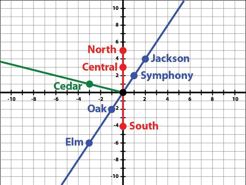The units of the subway map below are in miles. Suppose the routes between stations are straight, find the distance you would tr