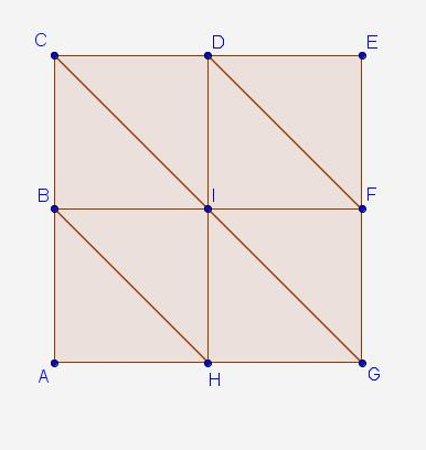 Ihen, each small triangle's area (such as ABH) is (b.h)/2, being the base and the height equal to the sides of the small square. Each small triangle is (4cm x 4cm)/2=8cm2