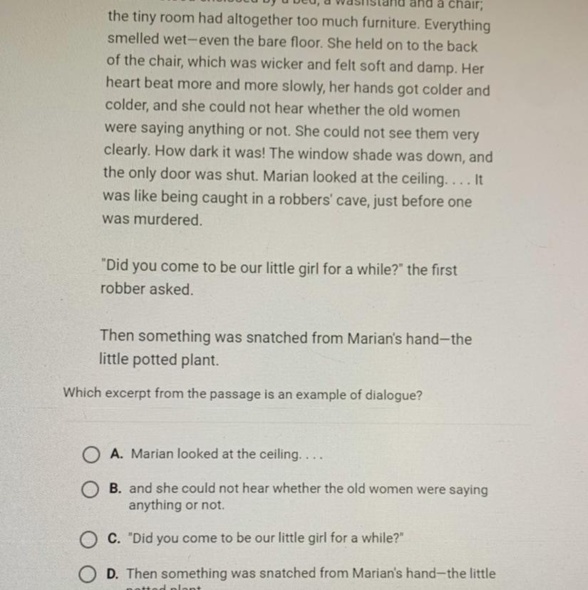 The answer to your question is A. Dill becomes sick in the court room. Truly a classic! I loved that book. Good luck!