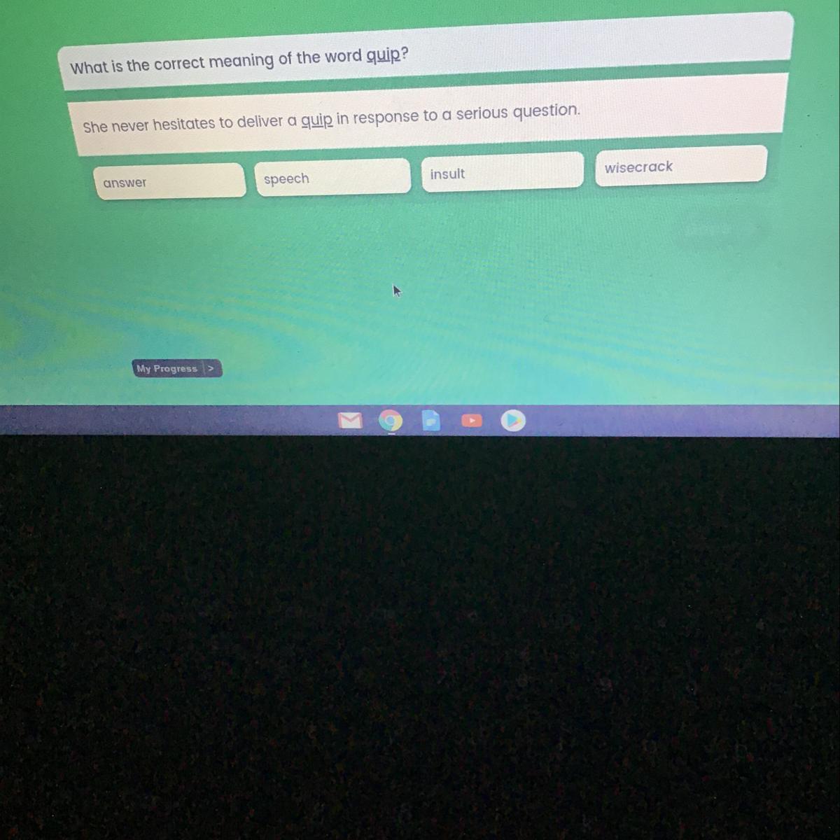 <em>I can see that there is no passage and no choices, so I answered it according to my own understanding.</em>