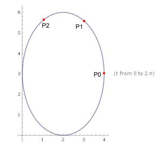 if t = 2 x = 1.16 and y = 5.72 P2(1.16, 5.72)