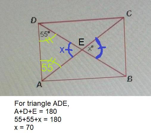 Triangle AED being isosceles then tells us that the base angles ADE and DAE are the same measure (both being 55 in this case).