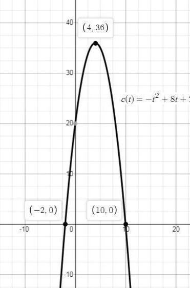 The factored form of given function is c(t)=-(t-10)(t+2).