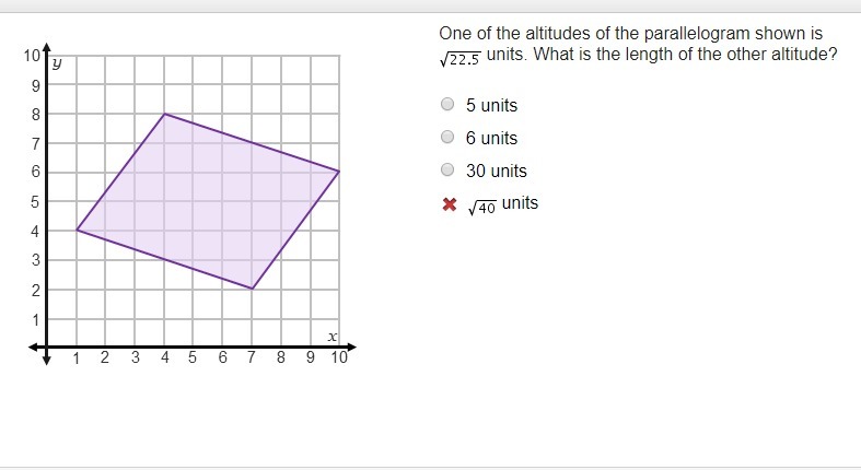 Therefore, the length of the other altitude of our given parallelogram will be 6 units and option B is the correct choice.