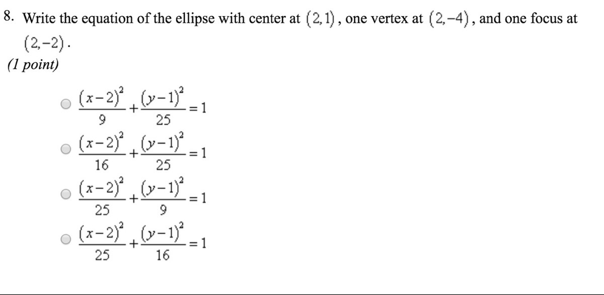 The above is for an ellipse centered on (h, k). in this case the center is in (2,1) so