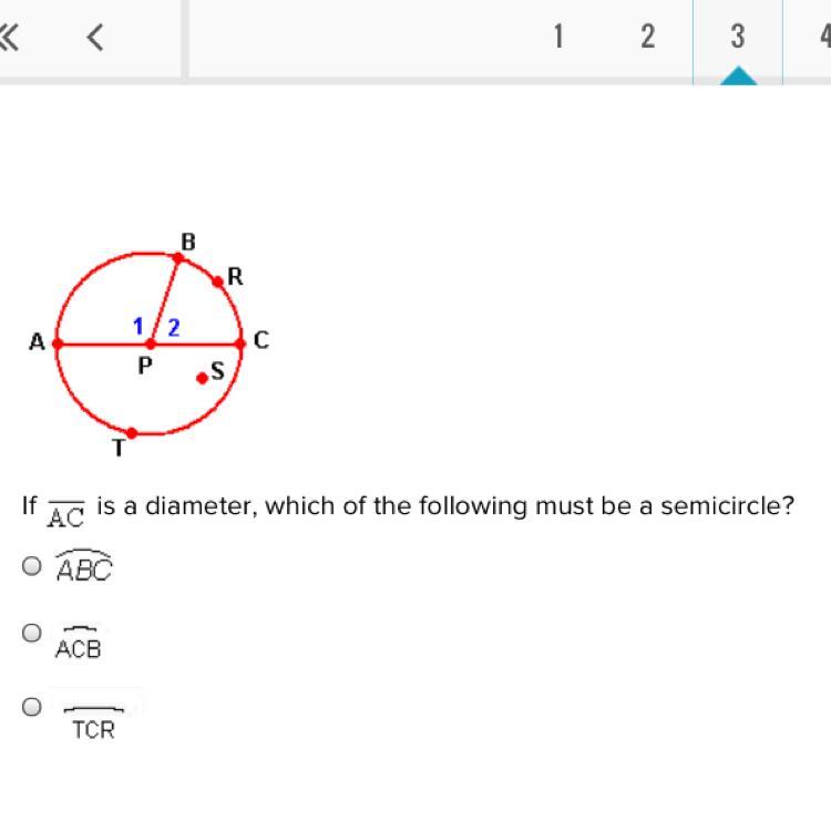 Upon looking at our given diagram, we can see that AC divides our given circle into two semicircles ABC and ATC.