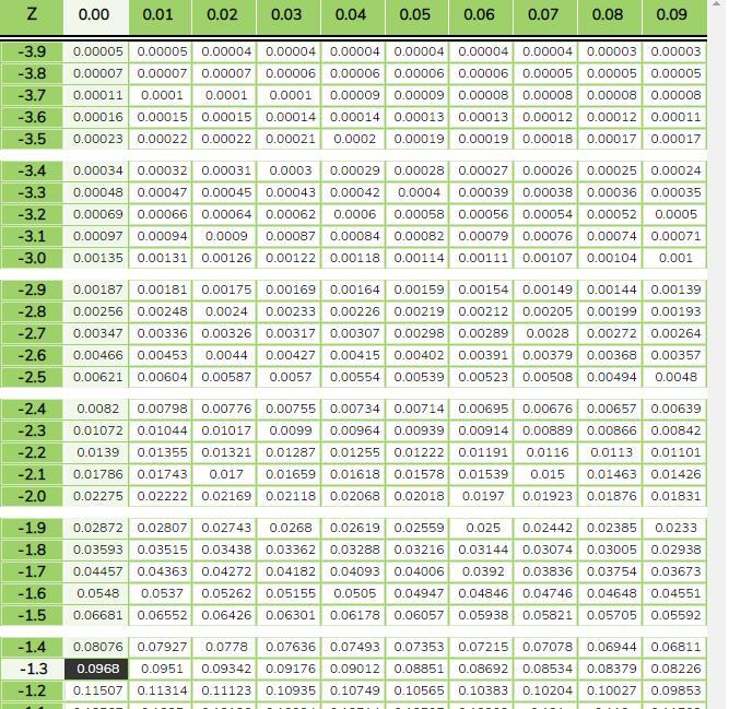 Z= 400-500/75 = -1.3 (taken x= $400)