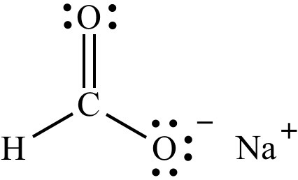 The structure of sodium formate showing lone pairs and formal charges on atoms is in the attachment.
