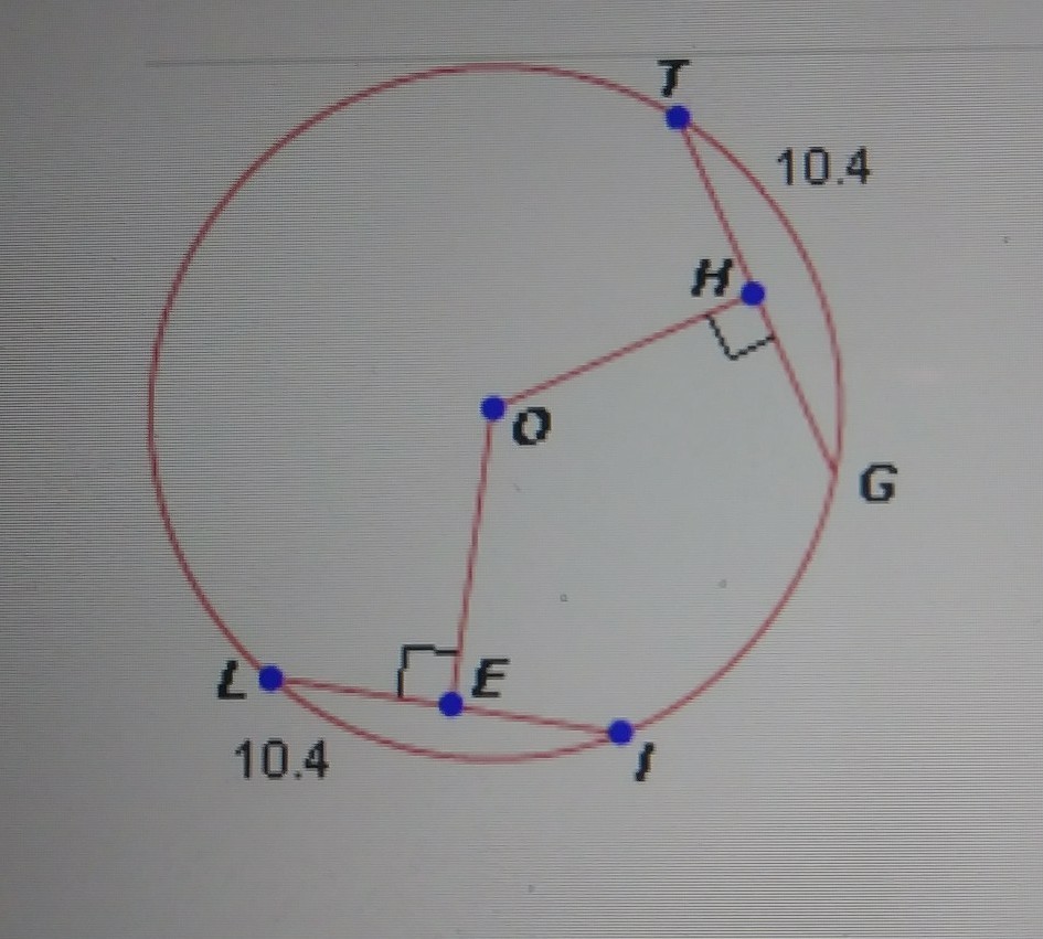 OE and OH are the perpendicular bisector of the chords LI and TG respectively.