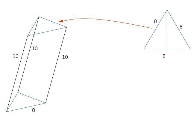 so.. to get the total surface area of it, simply get the area of the rectangles and triangles, add them up, and that's the area of the prism.