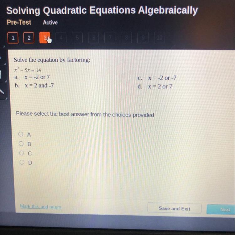 The two possible solutions are x = 7, or x = -2