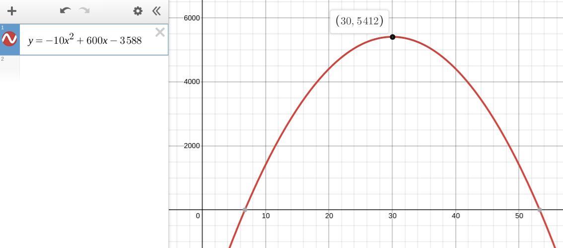 The graph shows the profit is a maximum for x=30.