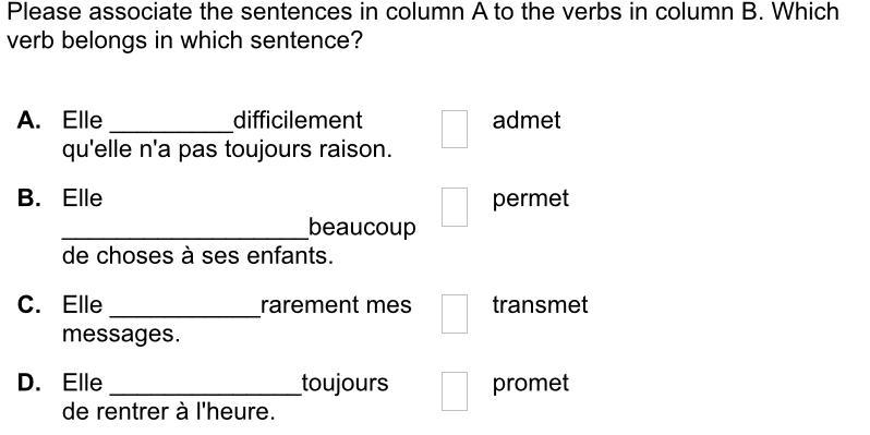 C- Elle transmet rarement mes messages. <em>(transmettre)</em>