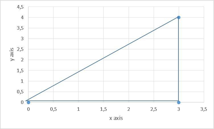When you look at that triangle and you evaluate it in terms of Pitagoras´s theorem, you see that one of its sides (called a) is 3 and the other (called b) is 4. The when you want to find the value of hypothenuse (h)