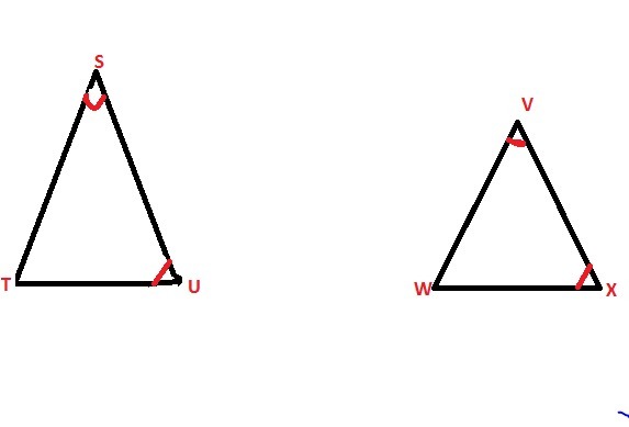 Here, ΔSTU and ΔVWX are given, where ∠S is congruent to ∠V.