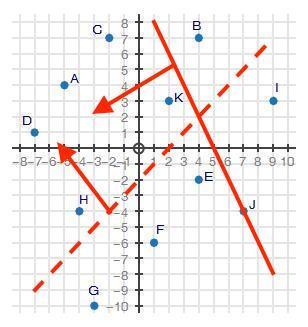 The second inequality has a slope of +1, so the line rises 1 grid space for each one i goes to the right. y-values are greater than those on the line, so shading is above the line.