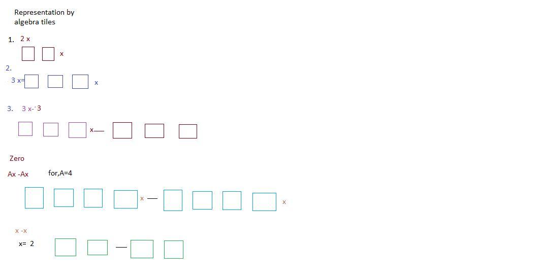 For example , 2 x=Draw two tiles of same color mark variable x in front of it.For, different values of x, we get different number of total tiles.