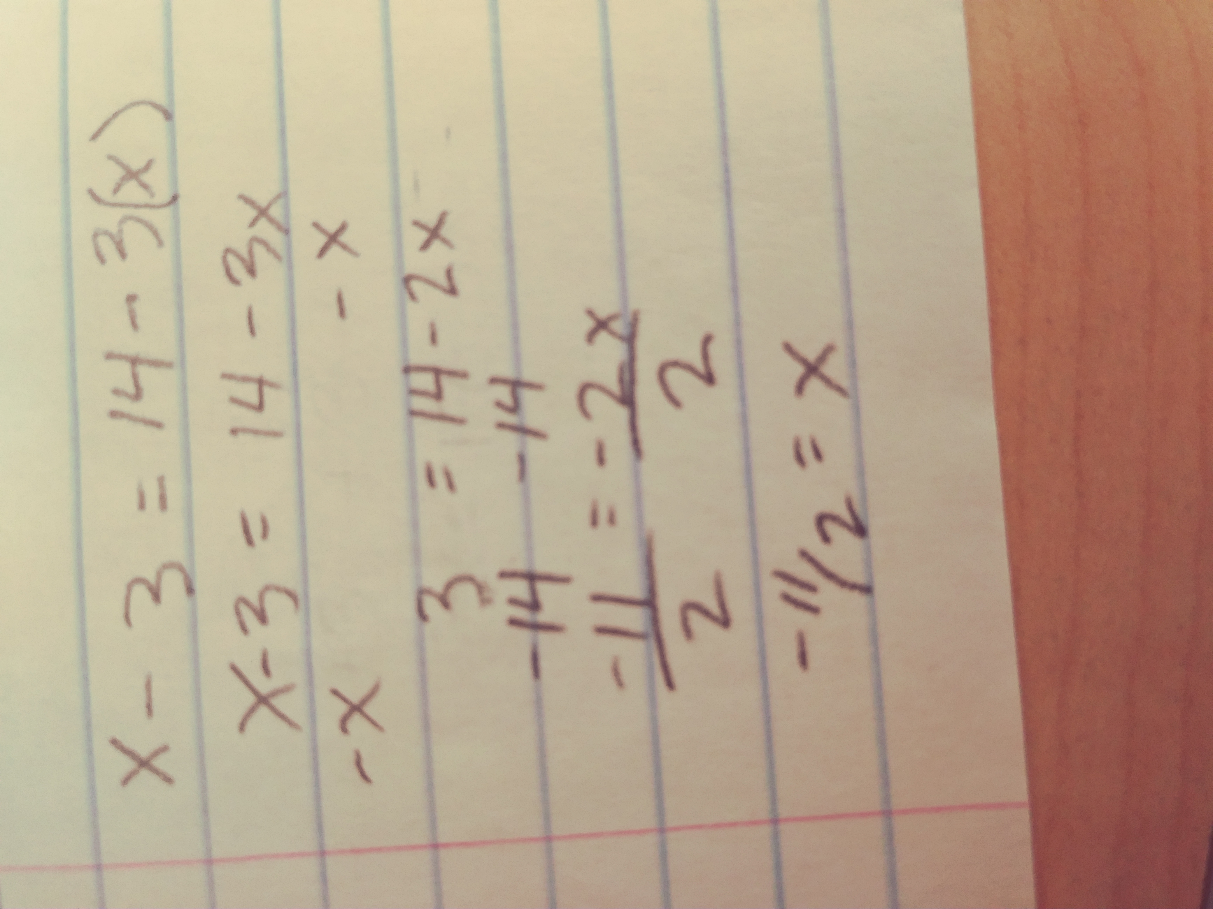 A number decreased by 30 is the same as 14 minus 3 times the same number. What is the number?