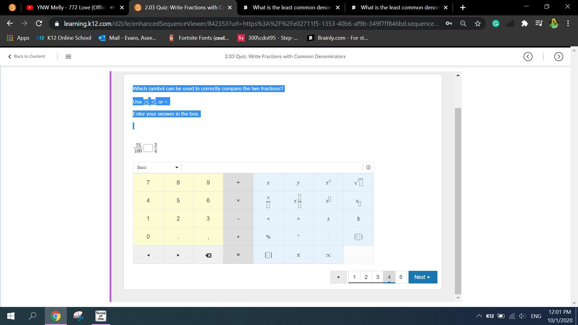 We want to find 65% of 20