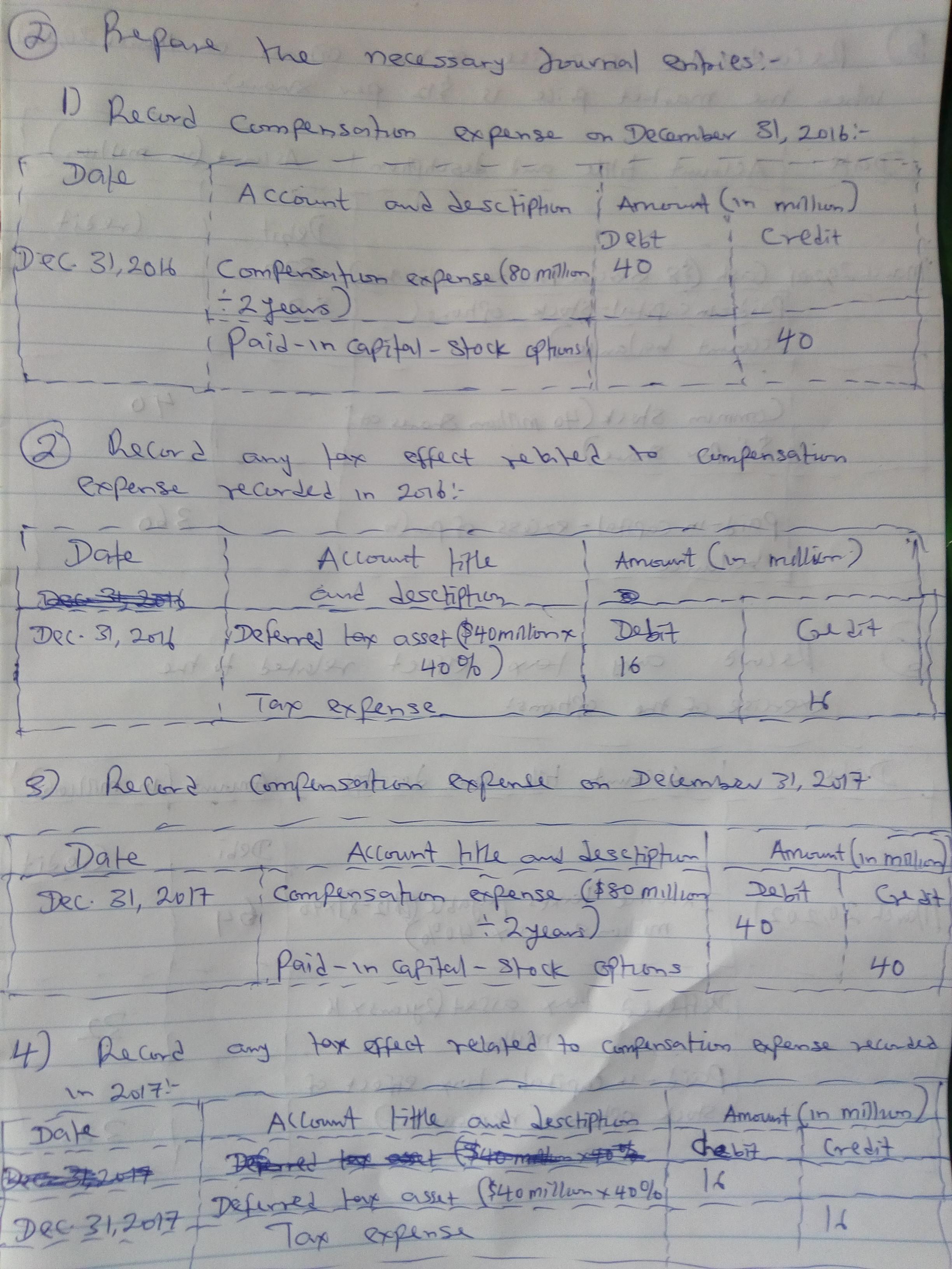 1. Determine the total compensation cost pertaining to the stock option plan:-