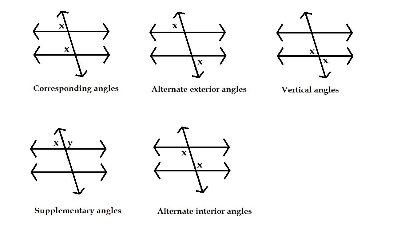 Alternating angles are congruent. Alternating angles are angles found on alternate sides of the intersecting line. You have interior alternating angles, so these are alternating angles inside the parallel lines, and you have exterior alternating angles, angles found alternating outside the parallel lines.