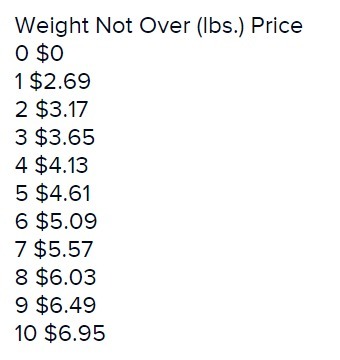 </span>We can't use the cost assigned to 3 lbs because the package is over 3 lbs but it is not over 4 lbs so we use the cost of 4lbs. (check the attachment for price)