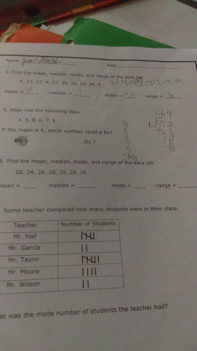 175 ÷ 7 = 25 for mean